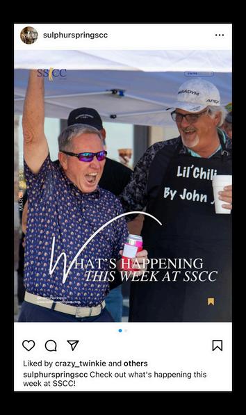 We would LOVE to share your photos, stories, and funny moments in the Member Newsletter! You can submit your cover photos, comics, and more to media@sulphurspringscc com Please make sure all submissions include your full name and member number.