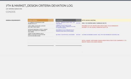 I created PDF’s with annotations. Each standard had a pdf of plans attached, with notes on how our plans deviated.The building is roughly 1 million square feet, with 12 levels of condos that did not entirely stack.