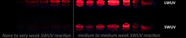 Rubies from amphibolite (metamorphic rock) are characterised by a distinct iron concentration, thus contributing to their colour and UV fluorescence reaction.