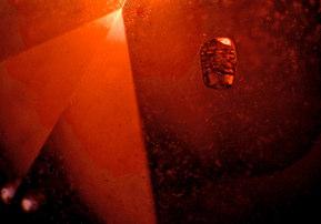 local change of the Ti4+ -Fe2+ intervalencecharge transfer (IVCT) presumably caused by a reaction with the amphibole inclusion results in spericalcolour „hole“ around these amphiboles.