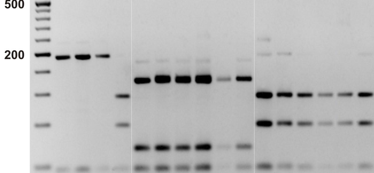 RFLP: The resulting restriction fragments are separated by enzymes according to their length by gel electrophoresis. The length (in base pairs) can differ between individuals and species such that the positions of gel bands can be used to separate samples from different species.