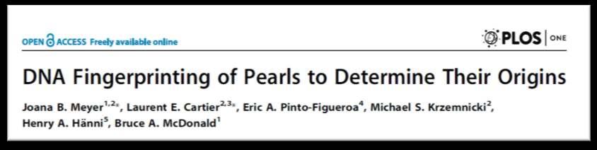 • 2013 study (Meyer et al. published in PlosOne) by SSEF and ETHZ showed that DNA could be extracted from pearls from the following species:
