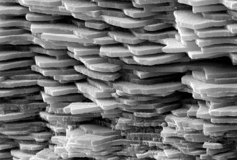 The OM (consisting mostly of conchioline and porphyrines), which is also secreted by the pearl sac, serves as a framework for the CaCO3 matrix during the biomineralization process. OM can also be found in concentrated pockets.