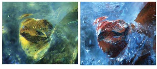 Change of main hue when holding the stone about 30 cm from the light source (standardised daylight and incandescent light).