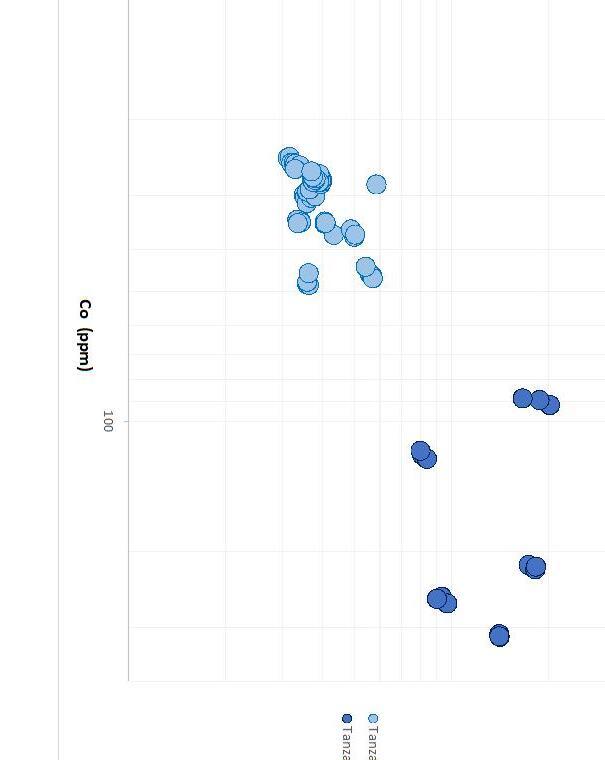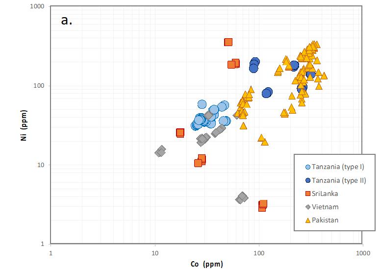 Trace element comparison of Co-spinel type I vs type II from Lukande