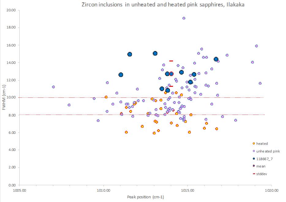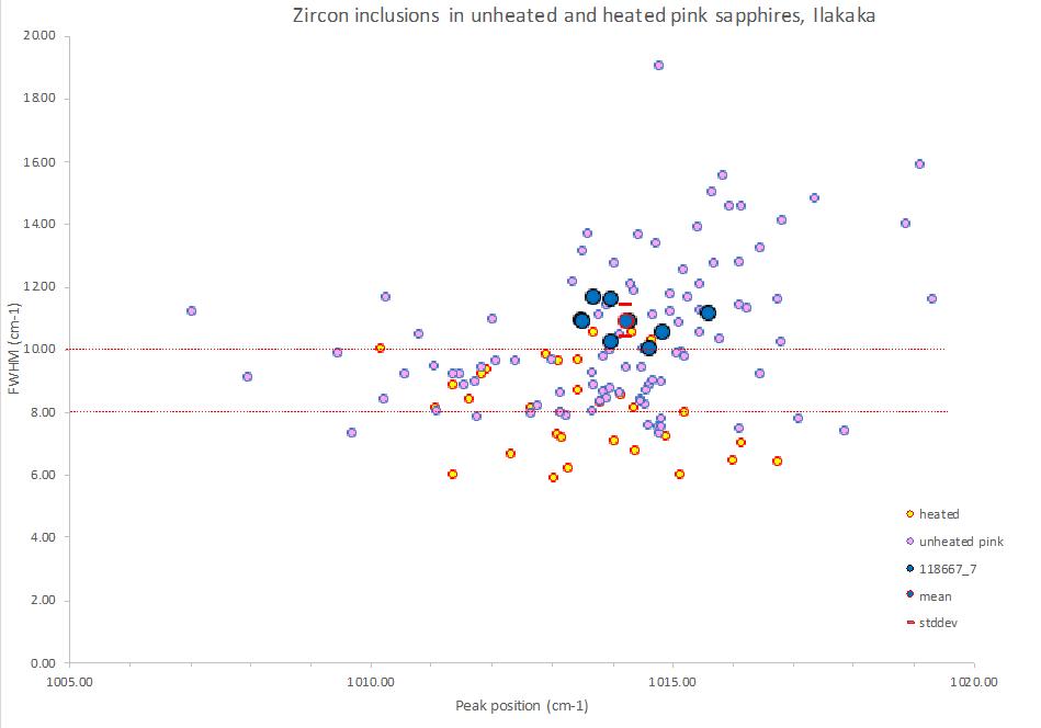 Large overlap of unheated and heated pink sapphires from Ilakaka (Madagascar). Yellow spots: heated Pink spots: unheated