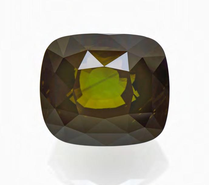 Impressive chrysoberyl of 609 ct from Sri Lanka. Only tiny traces of chromium (0.002 wt%) but much more iron.