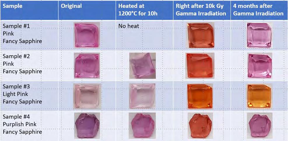 Since about two years, we have reliable information that rubies of purplish red tint (e.g. from Mozambique) and purplish-pink sapphires (e.g. from Madagascar) are treated by a small number of individuals using cancer radiotherapy equipment.