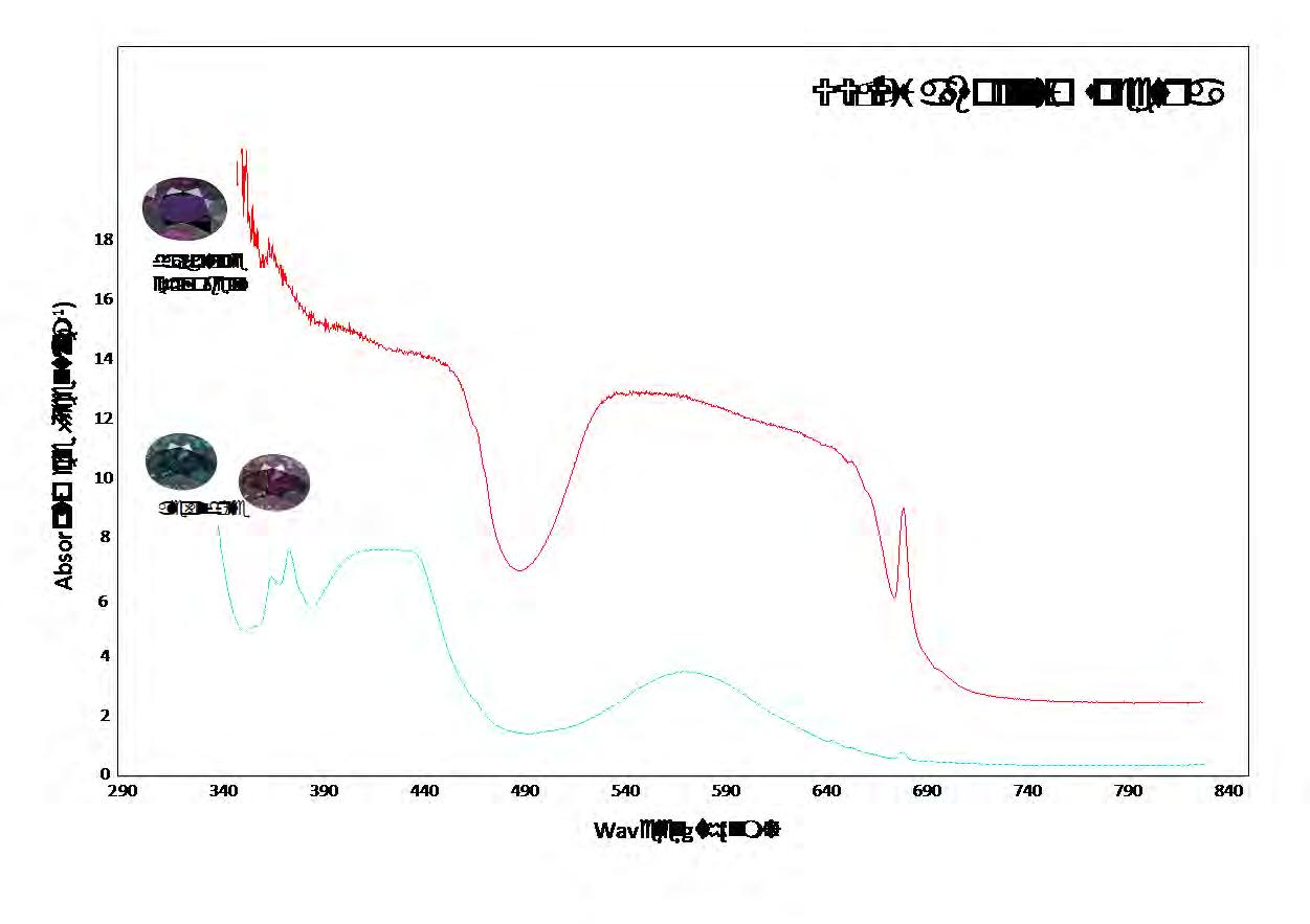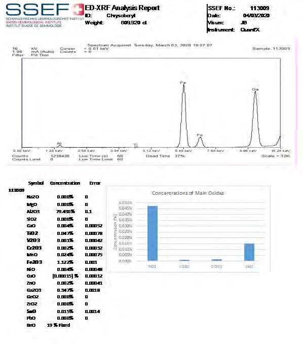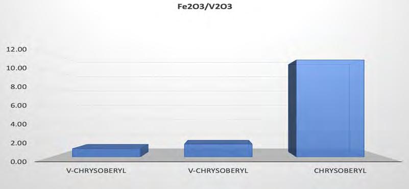 Chrysoberyl from Sri Lanka with equal vanadium and chromium concentration.
