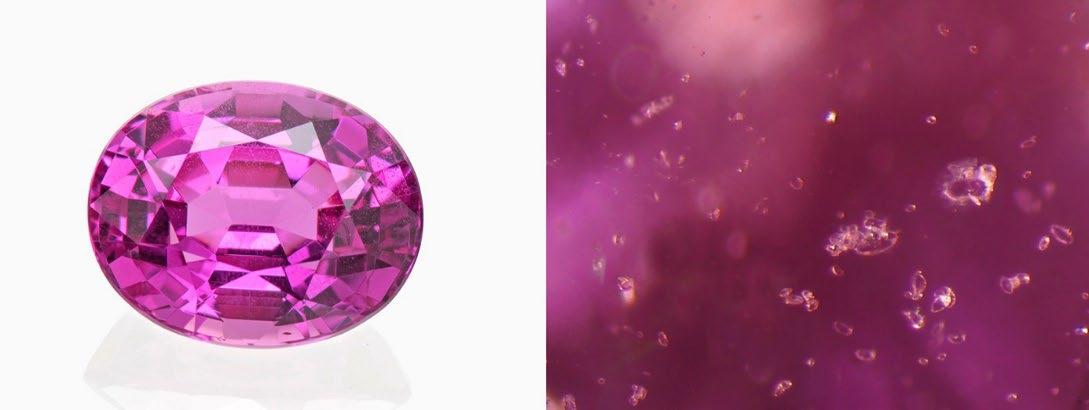“Hot”pinksapphirefromIlakaka(Madagascar)containing many smallzirconinclusions.