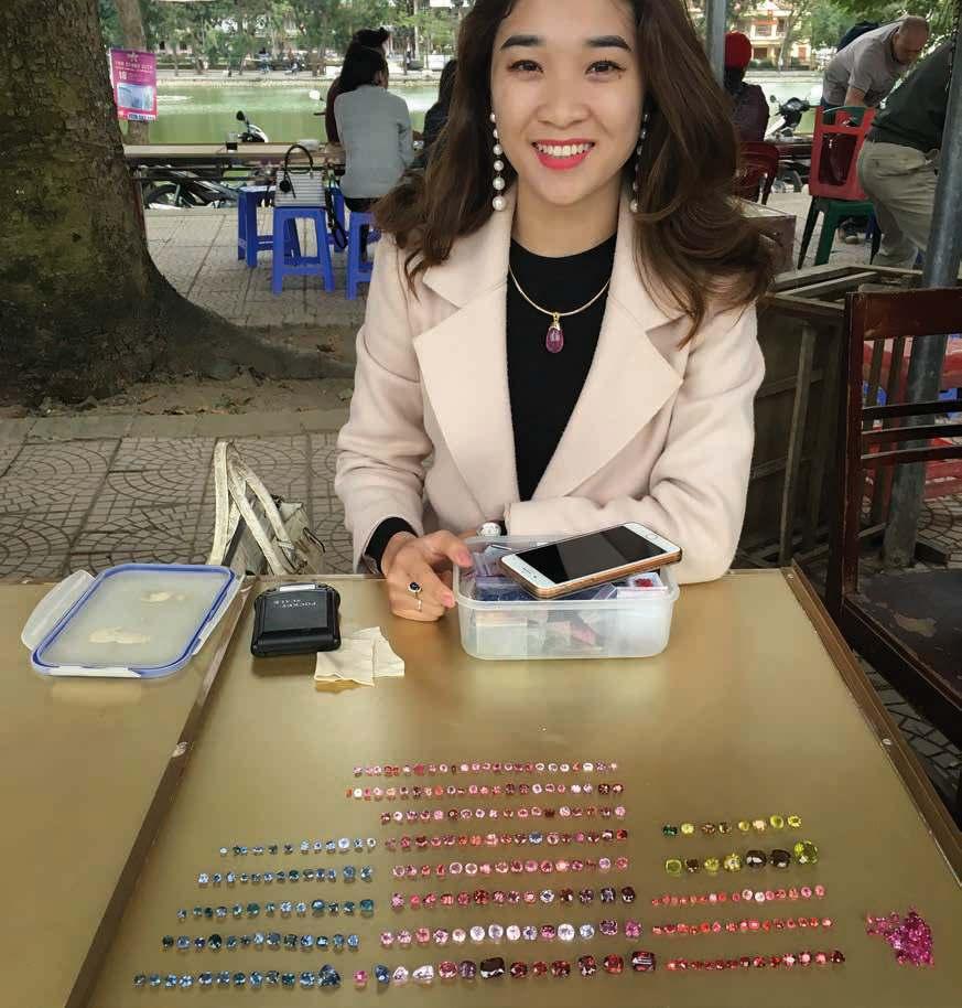 Gemstone dealer at gem market in Yen The, Vietnam.