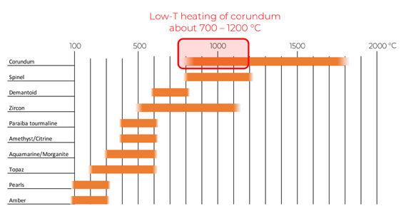 r Figure 2: Approximate temperature ranges for the heat treatment of selected gemstones (based on gemmological literature). Figure: M.S. Krzemnicki, SSEF.