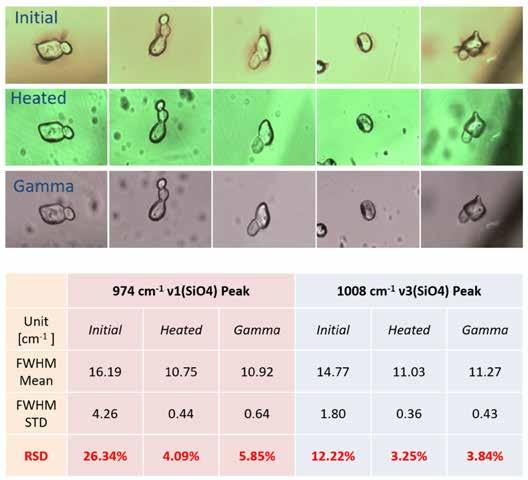 However, both FTIR and Raman have certain limitations, i.e. hydroxiderelated bands in infrared spectra are not always present in heated rubies and sapphires (Saeseaw et al. 2018, Pardieu et al. 2015) and the FWHM of the main Raman peak of zircon inclusions in unheated and heated corundum may show considerable overlap (Krzemnicki et al. 2021, Karampelas et al. 2023). Additionally, this Raman bandwidth in zircon inclusions is strongly dependent on the concentration of radioactive trace elements, crystallinity (metamictisation), and finally geological and geographic origin where the corundum has formed (Nasdala et al. 1995 and 2001; Xu & Krzemnicki 2021).