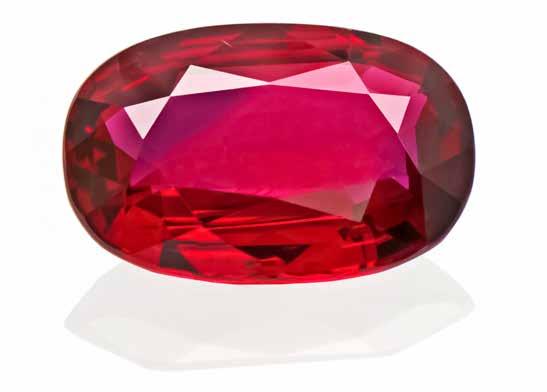 r Figure 3: Unheated Mozambique ruby of very fine quality showing a diffuse bluish zone in a corner. It may be possible to remove such a bluish zone by a low-temperature heat treatment. However, the trade nowadays prefers to keep these rubies unheated, if such a bluish zone is not affecting the beauty of the stone. The reason is that the price of unheated stones is much higher than of that of heated stones. Photo: L. Phan, SSEF.