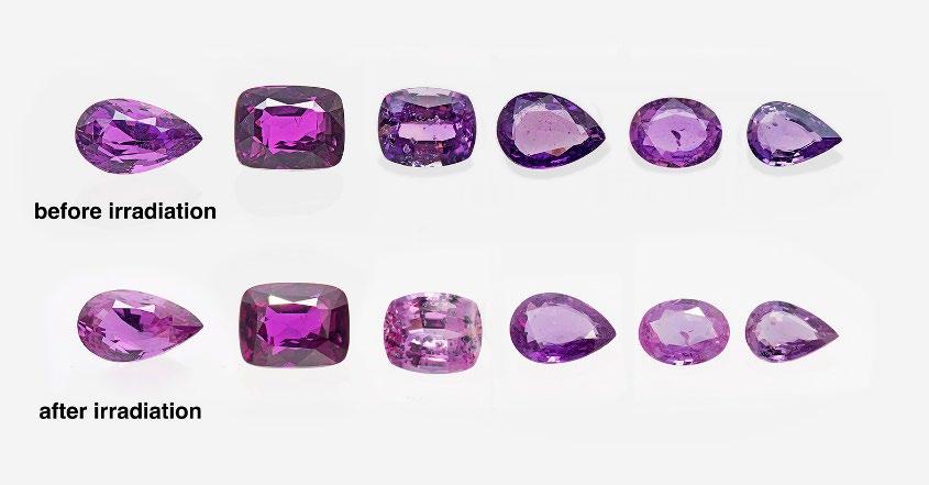 Distinct colour shift after irradiation in pink to purple sapphires, most not stable!