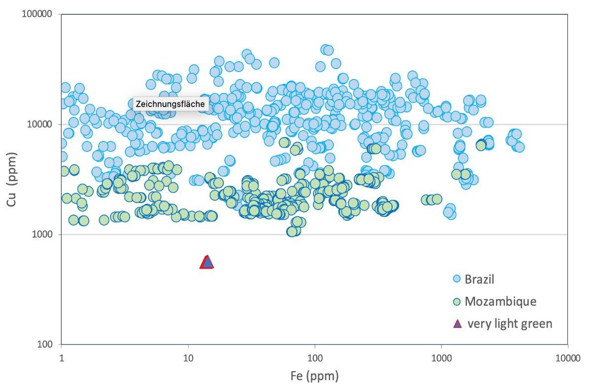 This tourmaline from Mozambique contains only low traces of Cu and as a result a weak colour saturation. It is not considered a Paraiba tourmaline!