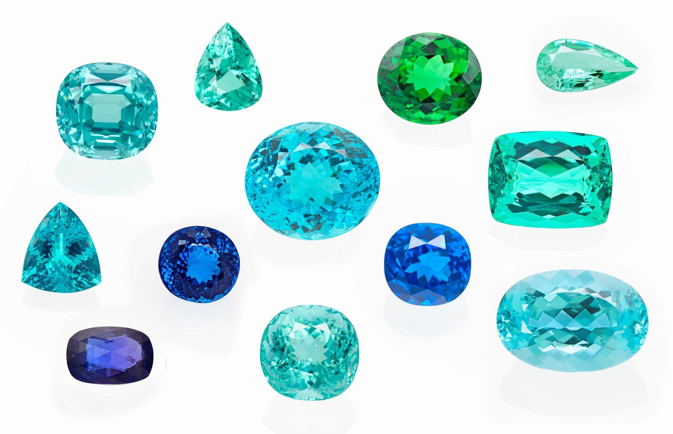 AGTA Awards (Tucson 2024): Suite of Paraíba-type tourmalines (88 ct total) from Amba Gem Corp. Photo: SSEF