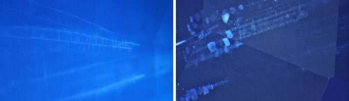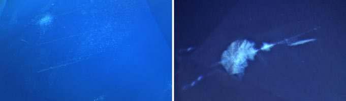 r figure 4c: Fine “dust” lines with brush-strokes in Kashmir sapphires compared to straight dust lines with defined patches in Madagascar stones (left photo by H.a. Hänni, SSEF).
