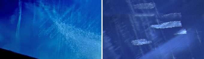 comparison of internal features from Kashmir sapphires (left) and Madagascar sapphires