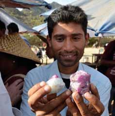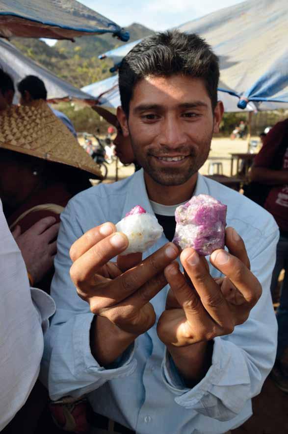 r figure 2: a local dealer offers spinel, ruby and sapphire in the gem market at luc yen, northern Vietnam. photo by B.M. laurs.