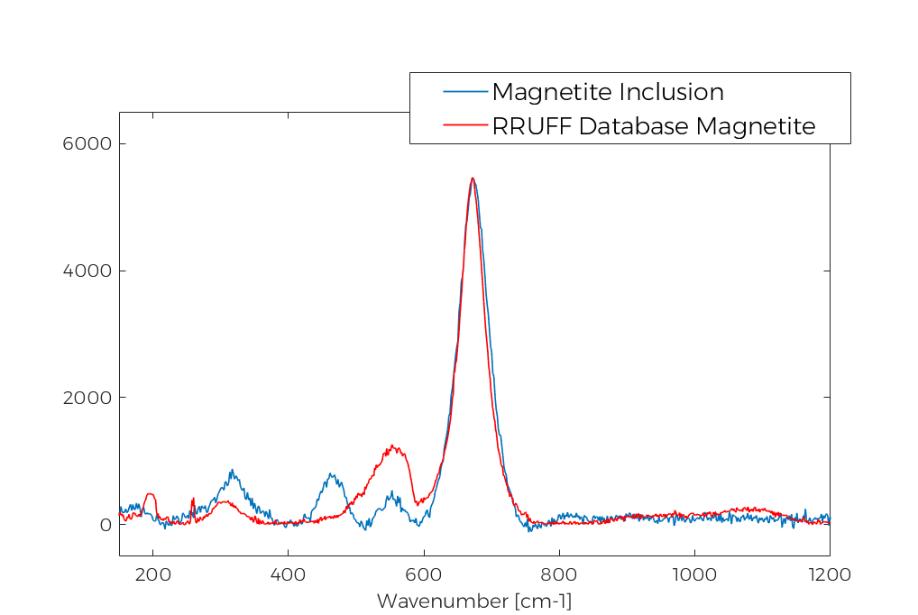 | PAGE 11 In Magnetite Inclusion in Diamond Magnetite Fe3O4 Covered by diamond Renishaw 514.5nm Raman | ELEMENTAL ANALYSIS OF INCLUSIONS