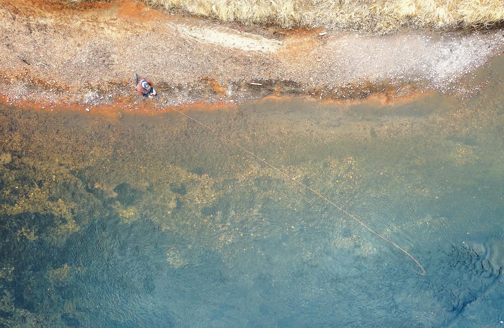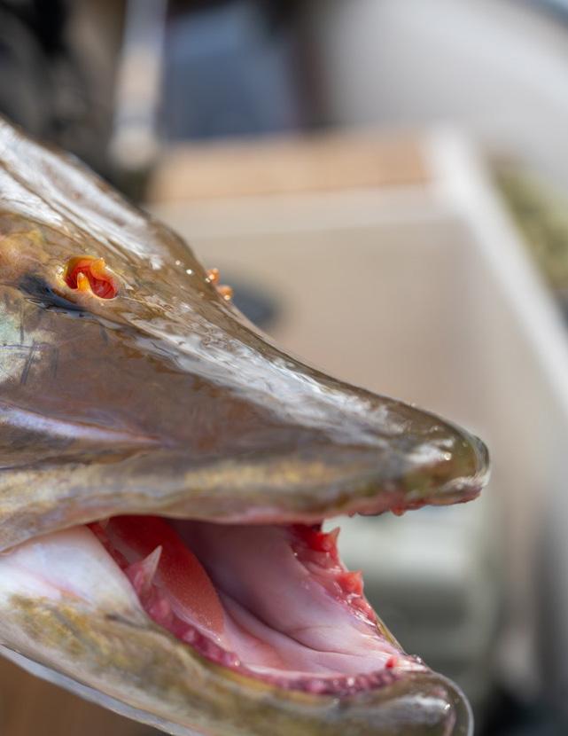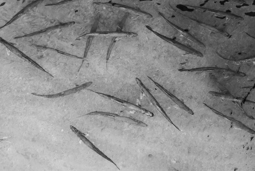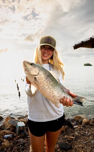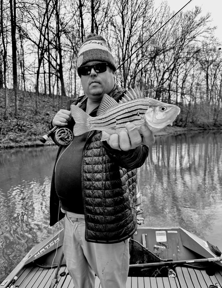 Tim took us to frozen pipes rimmed with ice—a Narnia for Alabamians recovering from depravity. We cast all day with little efect. But when we found warm springs bubbling into the 44-degree water, the game changed. Yellow bass slapped our tiny Clouser minnows. It took time, but we fgured out the slow strip retrieve and sidelong set to wear them out. Spotted bass, crappie, a dozen yellow bass— enough to save the trip from becoming another almost-fsh story.