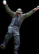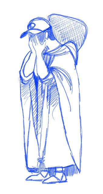 towards the trail. As I passed him, I saw him fumbling with something in his front chest pocket. He looked up at me, now with a saddened face, his toothless mouth closed yet still working up and down, trying to fnd words. He grabbed me by the shirt sleeve.