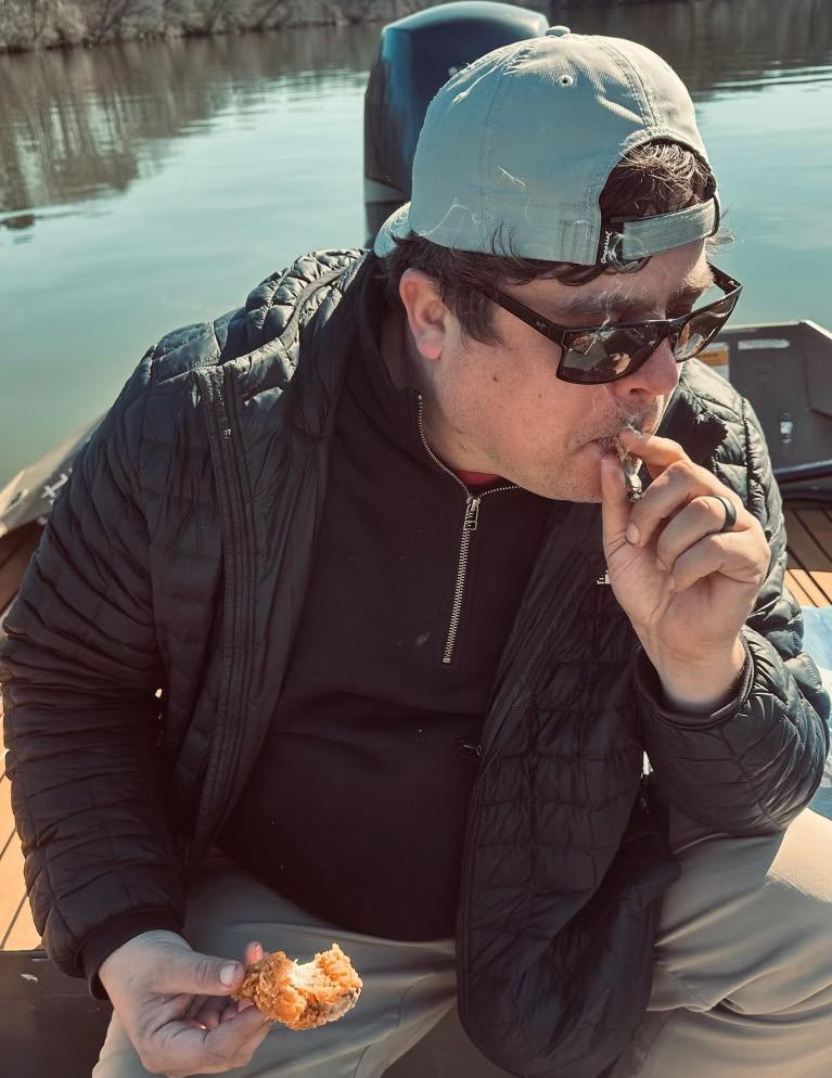 Oh, and as for me and Austin, the fsh were part of the journey, too. Tim knew where to fnd them, and after our rager at the Fox Trap, we woke up groggy but ready. Tim greeted us with cofee, and our inebriation still lingered. Austin lost his wallet in the bathroom the night before, but I found it, so we hit the road mostly intact. The fog of war was real, but Puss in Boots had already tested us the night before, daring us to pull a beer bottle lodged in her booty. It was Arthurian legend in the making, but neither of us proved worthy of her stone ass cheeks.