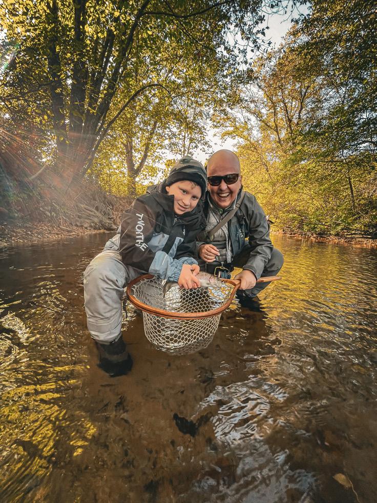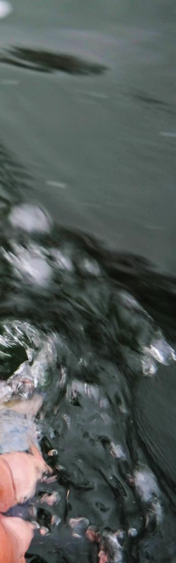 “I frst saw your larger-than-life smile in 2018. We had connected on Instagram and decided to meet up to fsh the East Fork of the French Broad River. I remember telling you, ‘I don’t usually do this—meet up with people I don’t know and go fshing.’ But even through Instagram, your energy was so authentic and real that I couldn’t resist. Gunnar was a bonus—bouncing around on rocks, barking as we netted fsh, and running circles in the riverside felds. You quickly became someone I wanted to spend more time with. You quickly became someone I loved deeply.”
