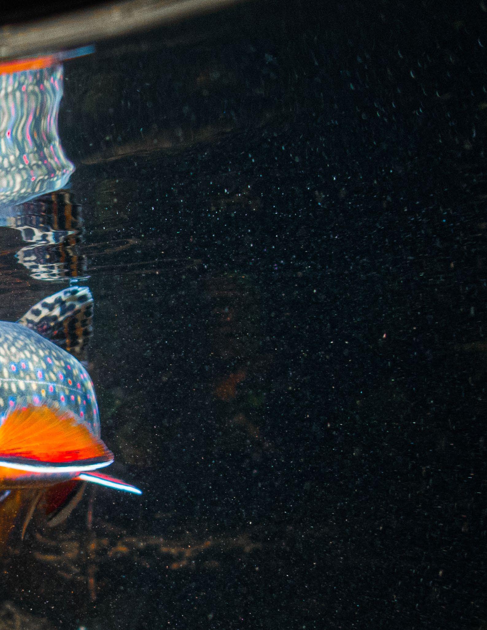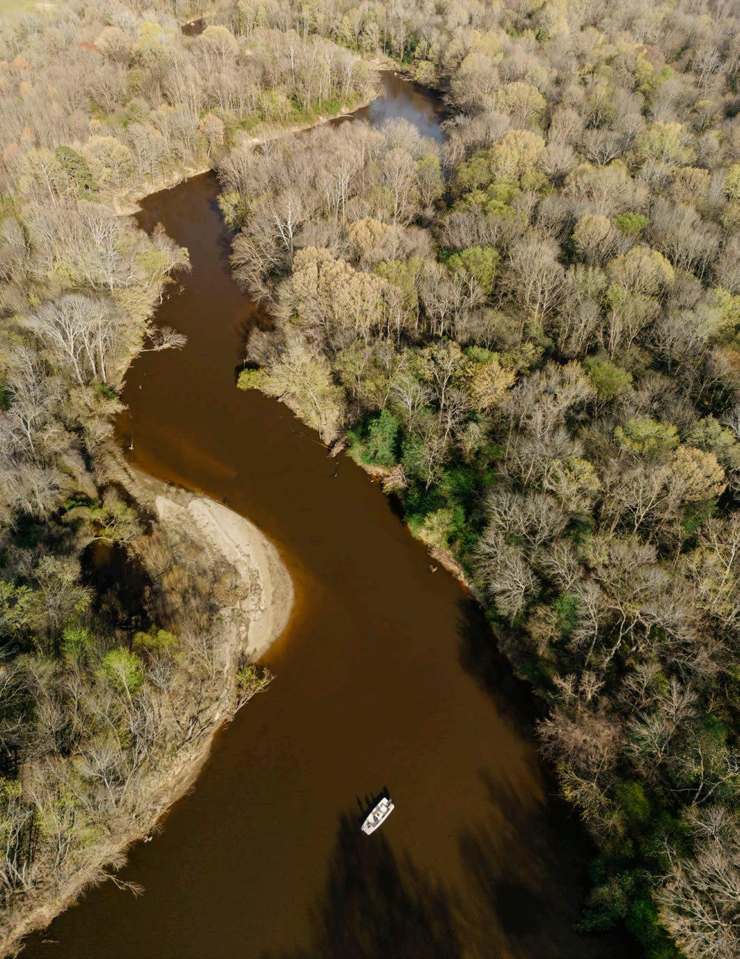 In the 19th century, emigrants from Europe introduced an Asian species of fish known today as the common carp. I have always loved to fly fish, but, like turkey hunting, I picked up fishing for this species very slowly. It took me about five years of being devoted to the sport to achieve a level of skill that allowed me to consistently find these golden ghosts. Fishing on the Gadsden flats, I spent hours among relict roadways now submerged by the damned waters of the Coosa waterway. Much as finding turkey a happy accident, I would never have realized that carp populated these backwaters if I had not been surveying the James Martin Bird Sanctuary for a local engineer. My end-ofhigh-school summer employment intended to be a dose of life’s practical side. Instead, I remember vividly the carps’ allure; largebodied fish gracefully pushing and sliding contrails of escaping muck clouds. It was like the turkey I had witnessed with sticky ice cream hands. These relocated creatures constitute our impressions of the