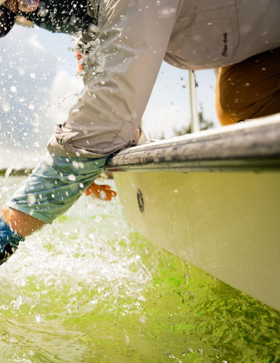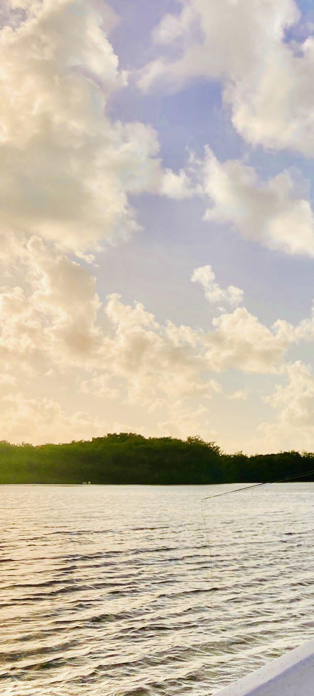 stay in it long enough to get another opportunity. Hell, maybe a permit even… The great distance and expense of bonefishing led to my preoccupation with local Alabama carp. The carp flats experience was so similar that I began losing myself in the imaginative world of a guide’s mind. Soon I was scribbling those ideas in a journal that led me to bang out my experiences on a blog, and as a freelancer for some hip fly fishing lifestyle magazines. But fishing tales are never just about fishing. Once, I wrote a story about taking my girlfriend on a combo trip to Bozeman, Mont. I was there to get certified as a casting instructor, and brought her as a serious step in our relationship. It was a “who are you” trip that amorously morphed into conceiving our first child. We argued most of the trip, and after a sad Outback Steakhouse dinner alone (on my birthday), something changed between me and her. I gave up on trying to certify myself as a casting instructor. I was overpowering my forward cast and causing a tailing loop anyway, so I had already failed the test, and I gave in. I vowed to become a high school teacher, and put childish dreams of pro fisherman aside. “I could be a pro writer though,” I thought. I could write as a side hustle. Then one day my cast instantly improved once I fixed the twoinch creep and the overpowering press of the thumb. Funny how such a small problem can destroy your confidence, knock you off track from chasing your dreams. And at the same time, maybe help you discover them.