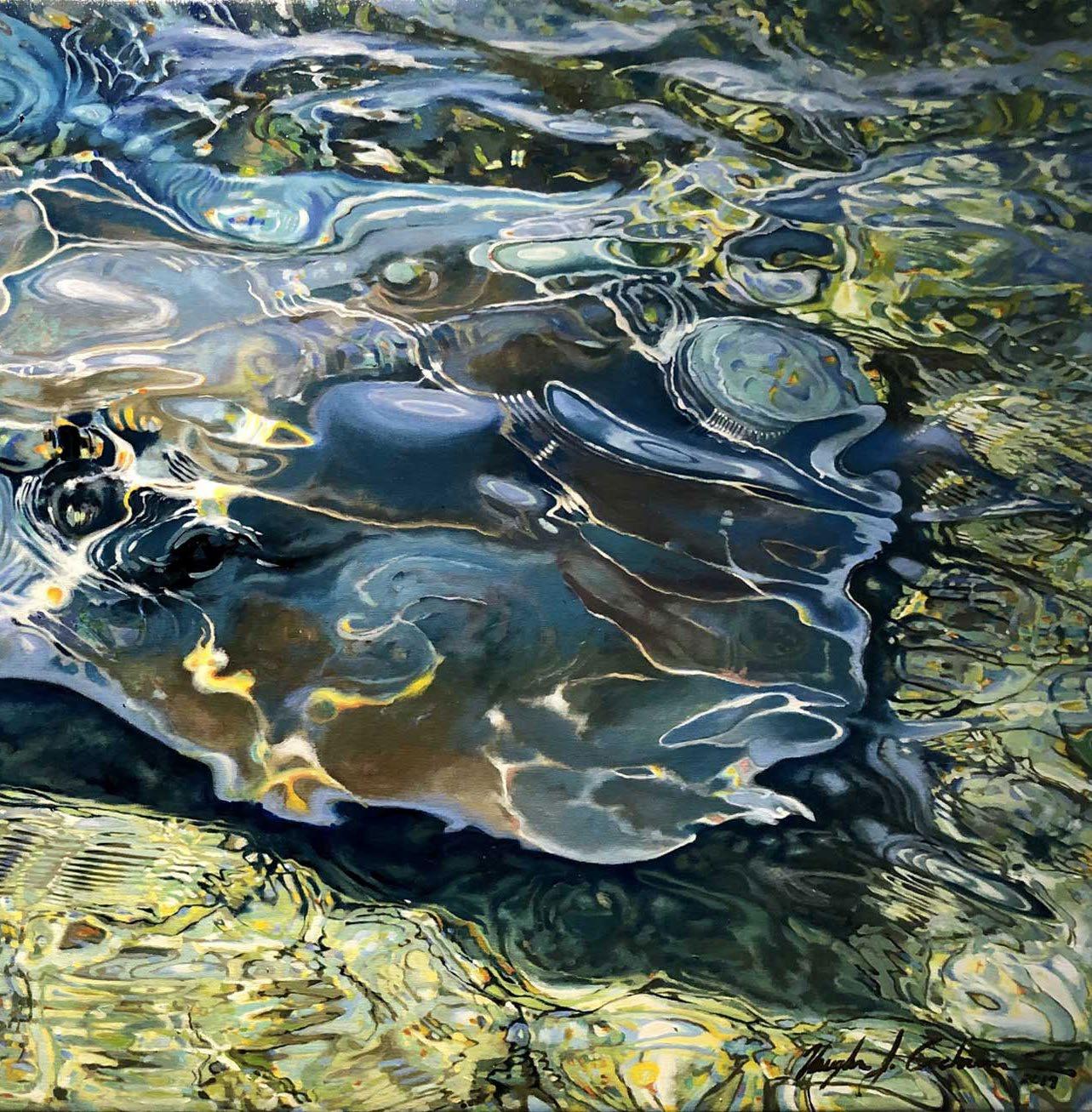 Arm raised, setting the hook and feeling the solid jaw all in one smooth motion. Working downstream to the clear. The drag sings before his acrobatics.