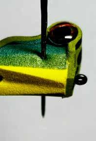 • Cut the 1/2” foam cylinder to 13/16” long. Sand one end close to a 45 degree angle using a belt sander or razor blade. This will be the top of frog.