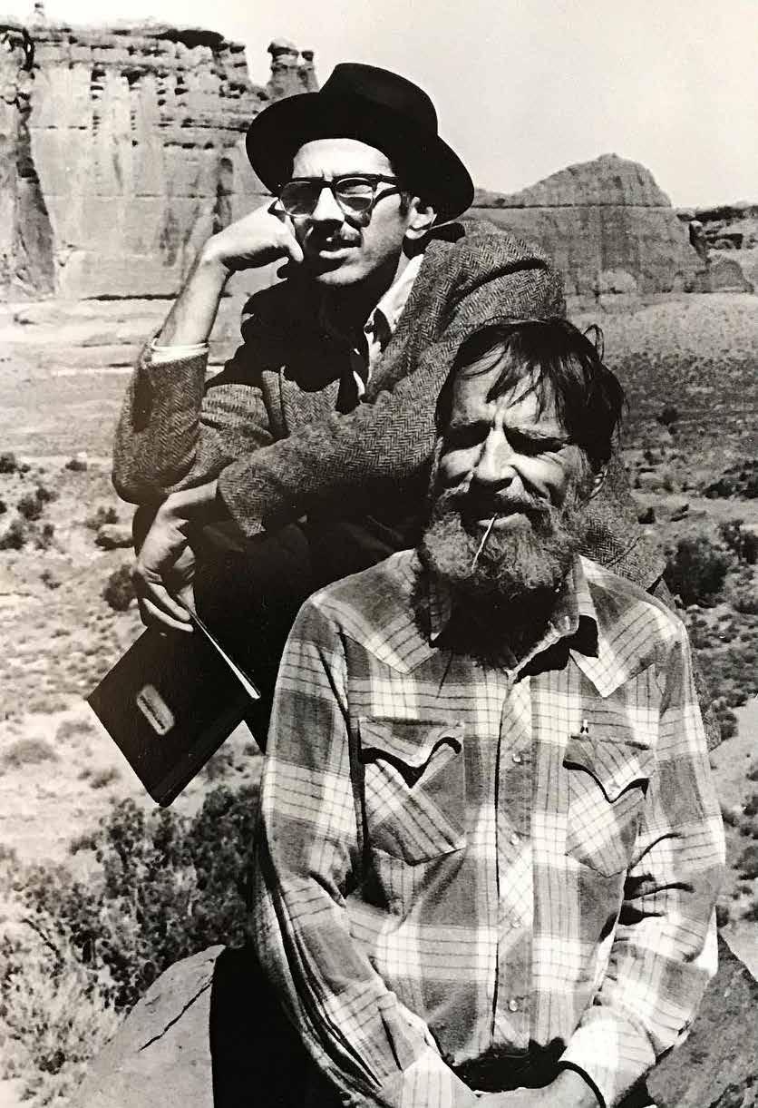 Robert Crumb with Edward Abbey in Arches National Park to promote Abbey’s ‘The Monkey Wrench Gang’ illustrated by R. Crumb. Photograph by Ernie Bulow 1985.