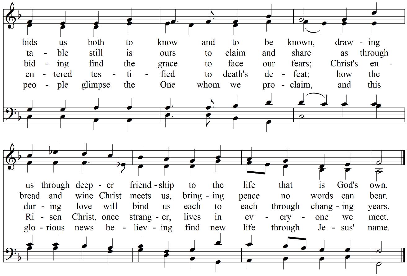 Presider We declare to you what was from the beginning, what we have heard, what we have seen with our eyes, what we have looked at and touched with our hands, concerning the word of life this life was revealed, and we have seen it and testify to it, and declare to you the eternal life that was with the Father and was revealed to us we declare to you what we have seen and heard so that you also may have fellowship with us; and truly our fellowship is with the Father and with his Son Jesus Christ. (1 John 1:1-3, NRSV)