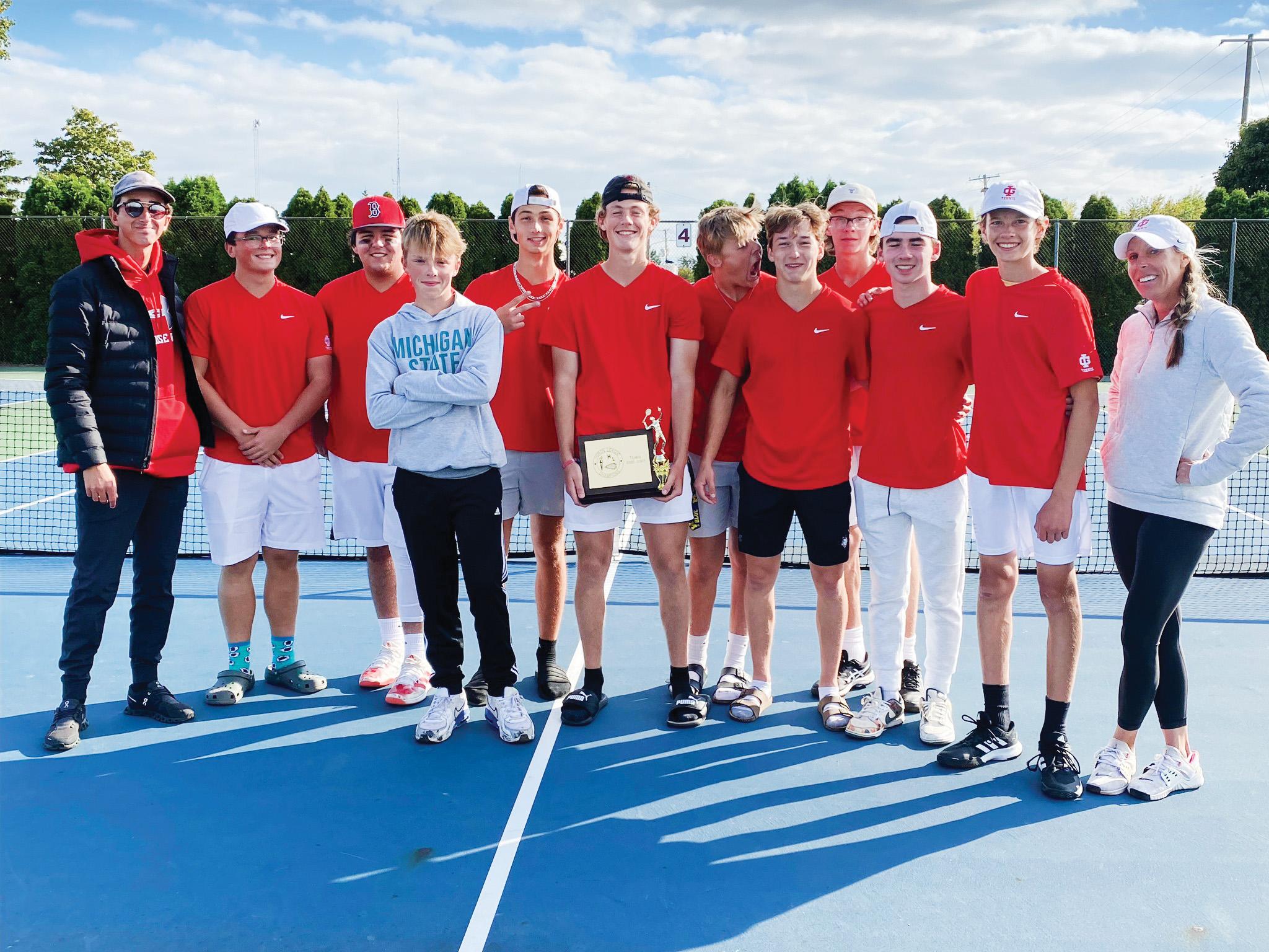 The Grosse Ile tennis team recently added another trophy to the school’s crowded case by sharing the Huron League title. Individual Devils also shined as the entire singles squad was named first-team all-league, as were the No. 3 and No. 4 doubles teams. Winning first-team honors were Luke Hargrove, Harry Simmons, Nic Naso, Nolan Karn, Brayden Keding, Dresden Keding, Mannie Riopelle and Hudson Randles. Earning second team honors were Caleb Johnson, Trent Chlebek, Sal Cunningham and Jack Calcut. The Red Devils were in action at regionals recently, looking for a state-meet berth. The regionals were played after The grosse Ile Grand’s press deadline.