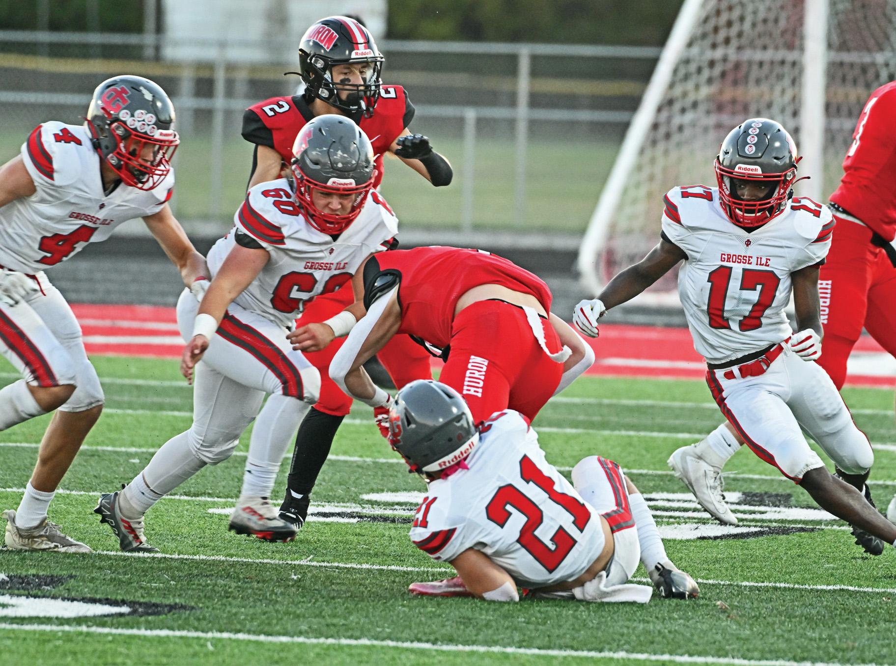 The Huron defense harassed Symons all night long and shut down the Red Devils running game. The result was a one-sided affair in which Grosse Ile accumulated just 42 total yards worth of offense.