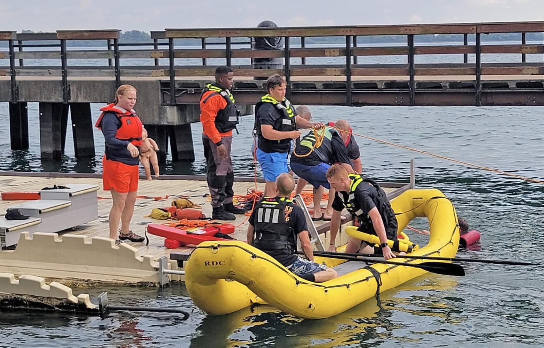 Members of the Grosse Ile Fire Department took part in a joint water rescue training session alongside personnel from several neighboring departments. The training, designed to enhance emergency response and rescue techniques, provided an opportunity for firefighters to sharpen their skills through handson instruction and collaboration with regional partners.