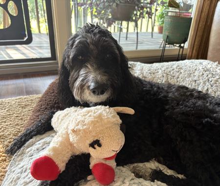 This cute Yellow Lab loves playing outside—especially with his favorite tennis ball. Though he’s 5, he’s still a snuggly baby who loves naps. He’s sweet, goofy, & loves flopping on his back with his legs in the air. However, mornings aren’t his thing. He hates being woken up when his owner, Sommer, goes to work!