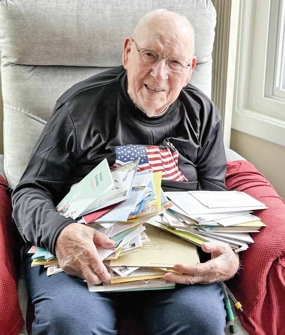 Proud daughter Theresa is a member of the Monguagon Chapter, Daughters of the American Revolution. Along with the chapter’s help, Theresa got the word out asking that her dad receive 100 birthday cards. And by his birthday, Mr. Ankney had received 237 birthday cards from all over the world.