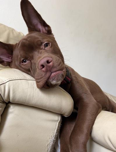His name says it all. Inspired by the name of Scooby Doo’s nephew, this 2-year-old Akita Bullmastiff is a pup with a BIG personality who clearly knows how to lounge real well, too. Scrappy resides with the Bovee family and is a very special part of their lives.
