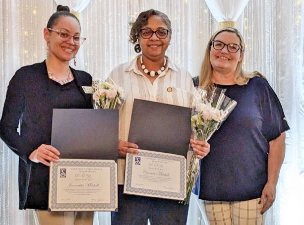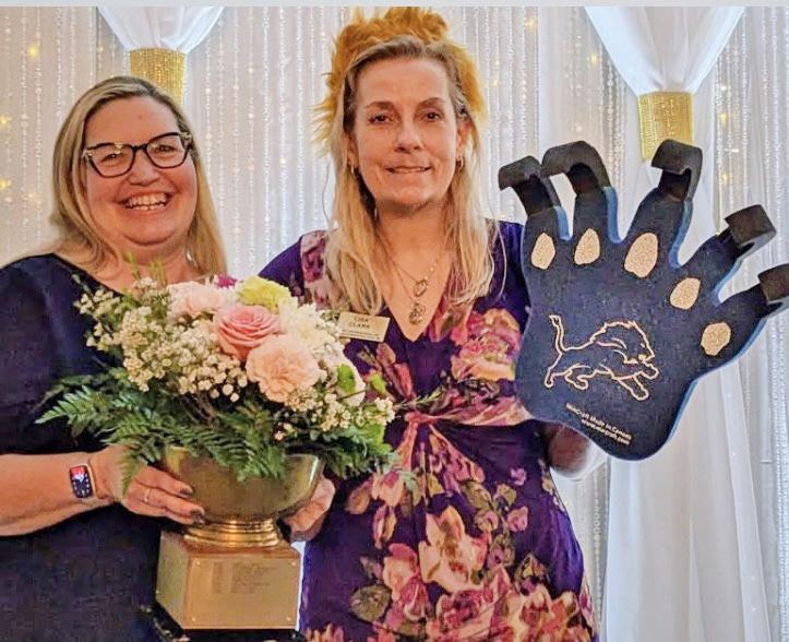 award to mother-daughter duo Carmen and Jenneatta Mitchell, acknowledging their dedication and contributions to the mission of Soroptimist. The evening’s highest honor, “Soroptimist of the Year,” was awarded to Lisa Clark. Voted on by fellow members, the recognition reflected Clark’s outstanding service and commitment. As Assistant Treasurer, she has consistently volunteered her time and talents and has been present at nearly every Soroptimist event. Last year’s honoree, Mary Pilon, was also presented with a commemorative plaque acknowledging her prior award.