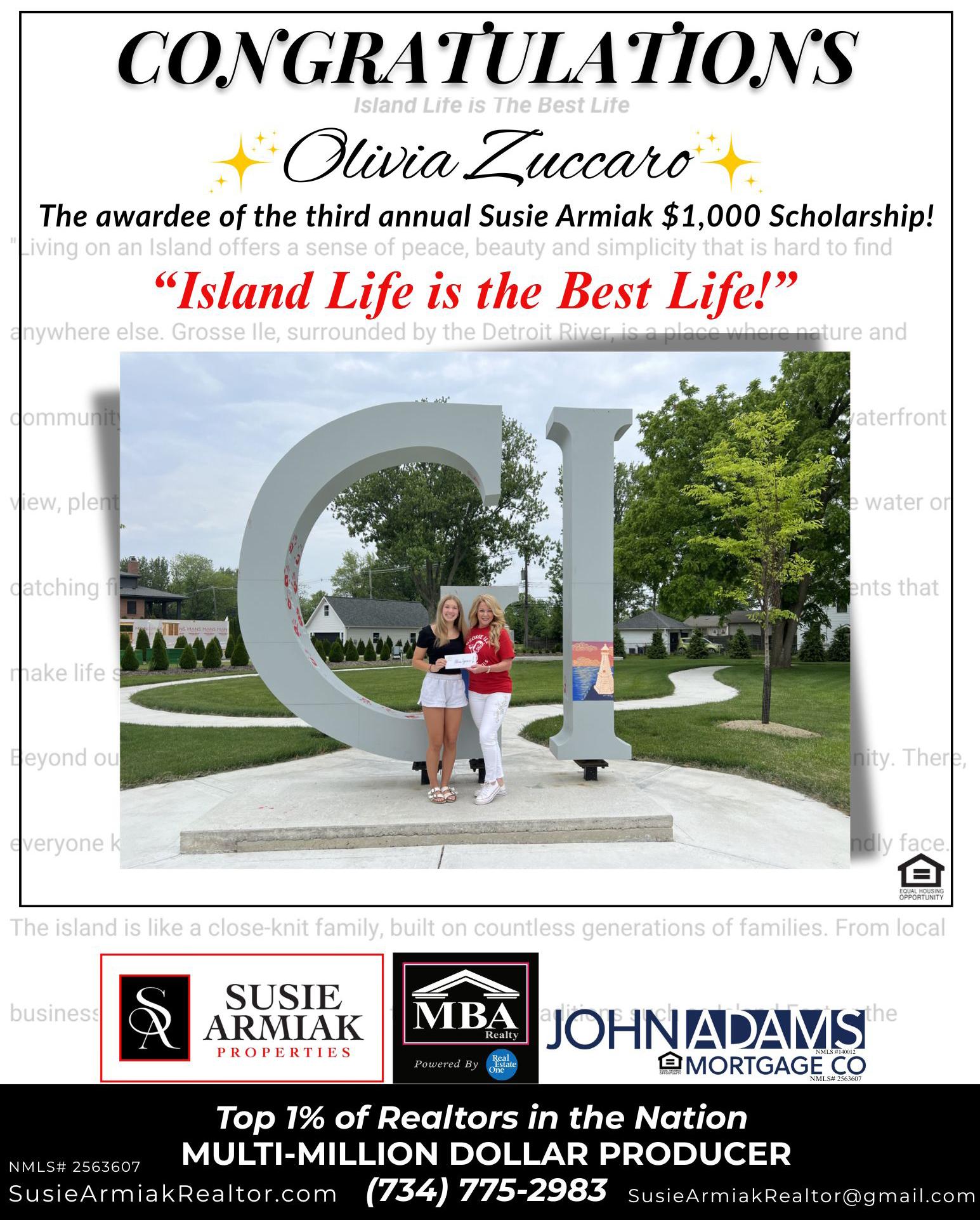 Katie Hartwell, Scholarship Chairperson of the Book Club of Grosse Ile is pleased to announce: