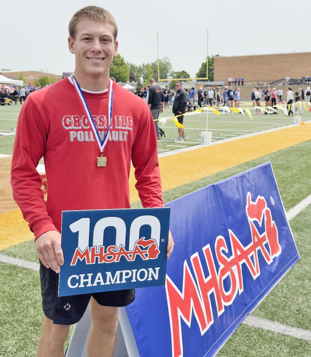 At the MHSAA Track and Field Division II Championships, GIHS senior pole vaulter, Sam Vesperman made history as the first athlete to win three consecutive state championships in his prep career.