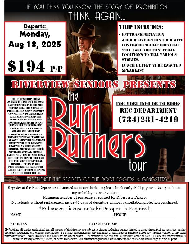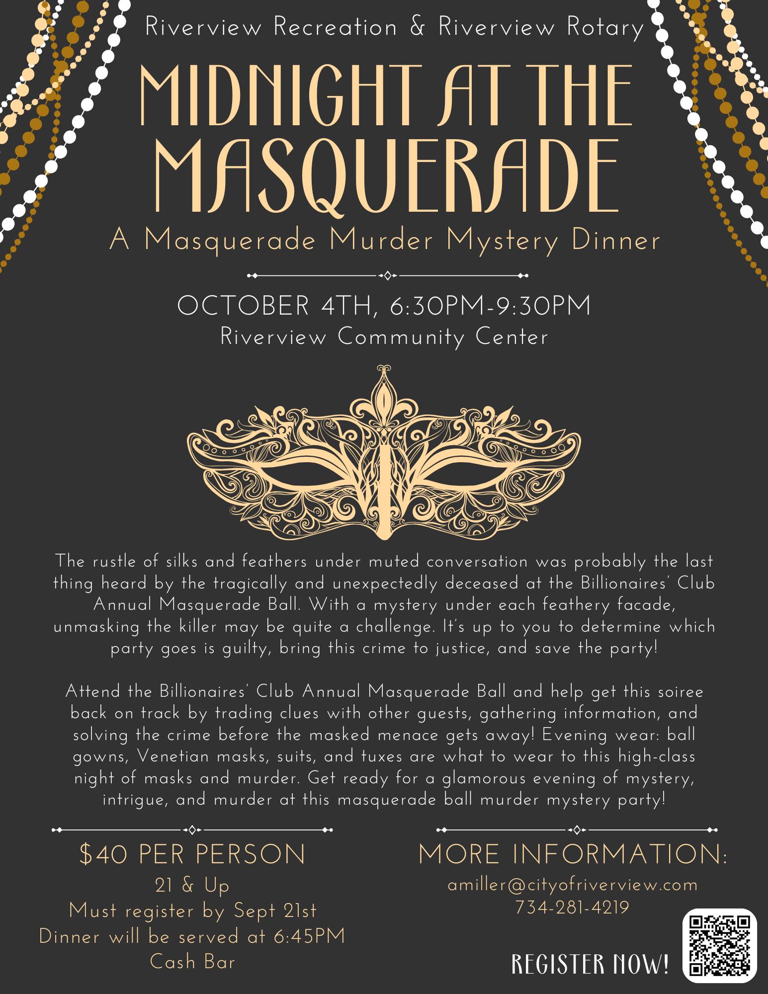 Then, on Saturday, October 4th, the Rotary and our Recreation Department will transform the Riverview Community Center into a thrilling and fun-filled venue for a Murder Mystery Dinner, an evening of entertainment, good food, and a little suspense, all for a great cause.