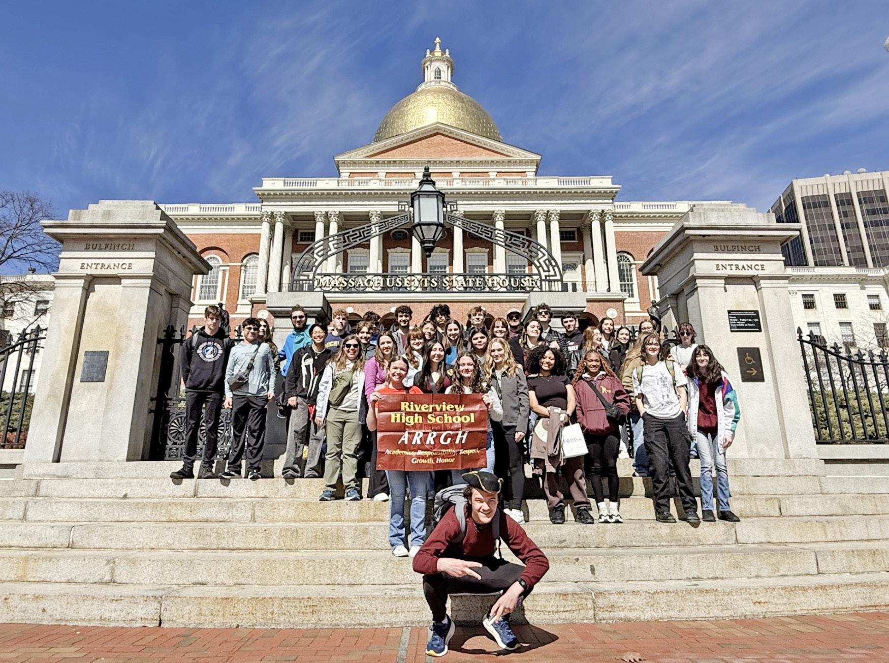 Over Spring Break 2025, 37 Riverview Community High School students made the transatlantic flight to begin their European Adventure. The trip took an unexpected turn (literally) as the initial flight was rerouted to Boston. Students spent the next 3 days exploring the city,