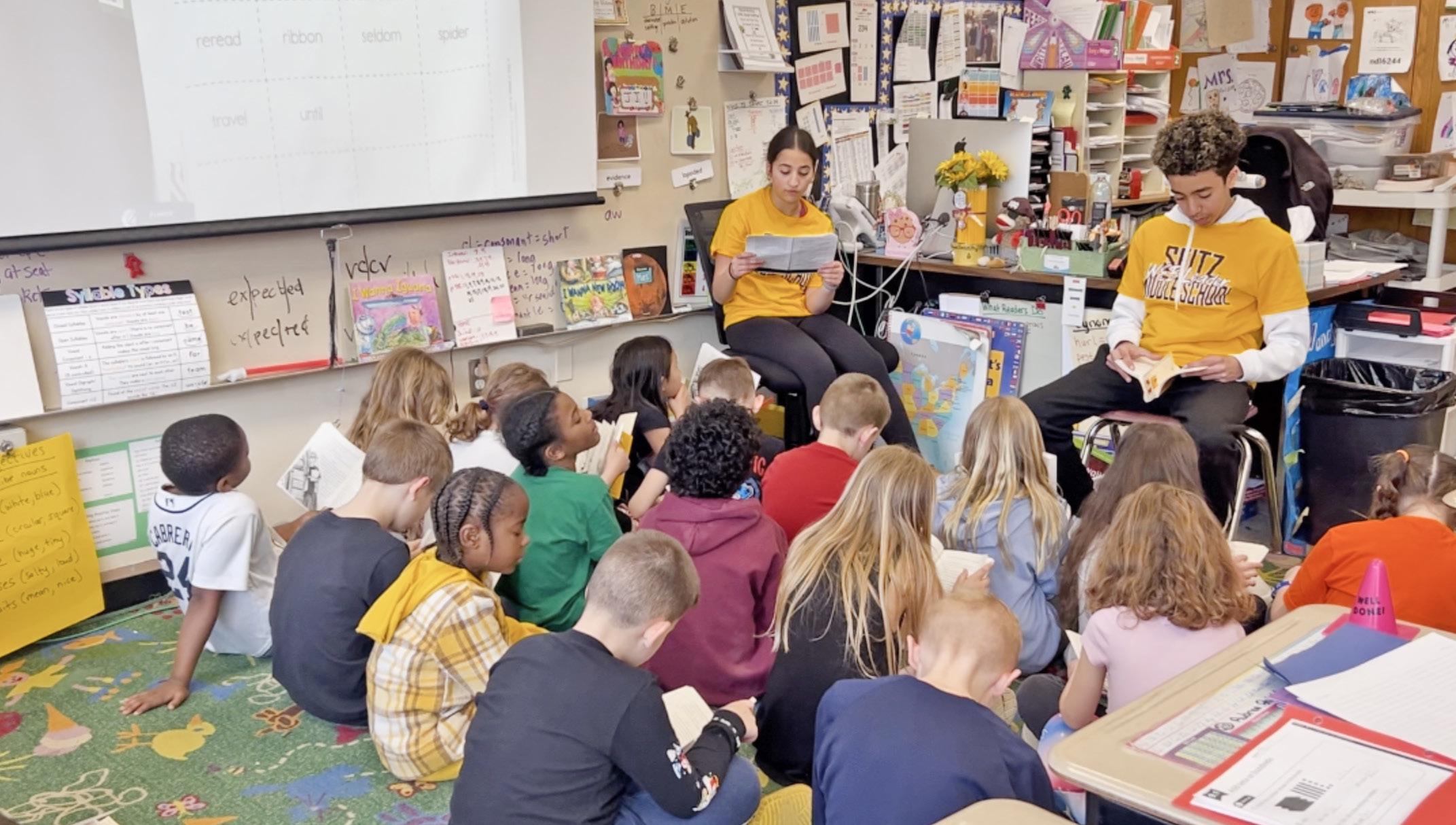 Seitz Middle School’s WEB (Where Everyone Belongs) leaders recently embarked on a heartwarming journey to all three elementary schools in the district, participating in the “One District, One Book” initiative. This program, designed to unite students and staff across all grades, saw the WEB leaders reading a chapter from the beloved book “Charlie Bumpers vs. the Teacher of the Year” to groups of eager elementary students.