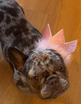 Does she know she’s cute? Sure does! Willow will be turning 2 on January 26th! She’s ready to celebrate!! She thinks she needs a frozen blueberry every time she potties outside and follows Mom EVERYWHERE she goes, but her owners, the Santiago’s, wouldn’t change a thing.