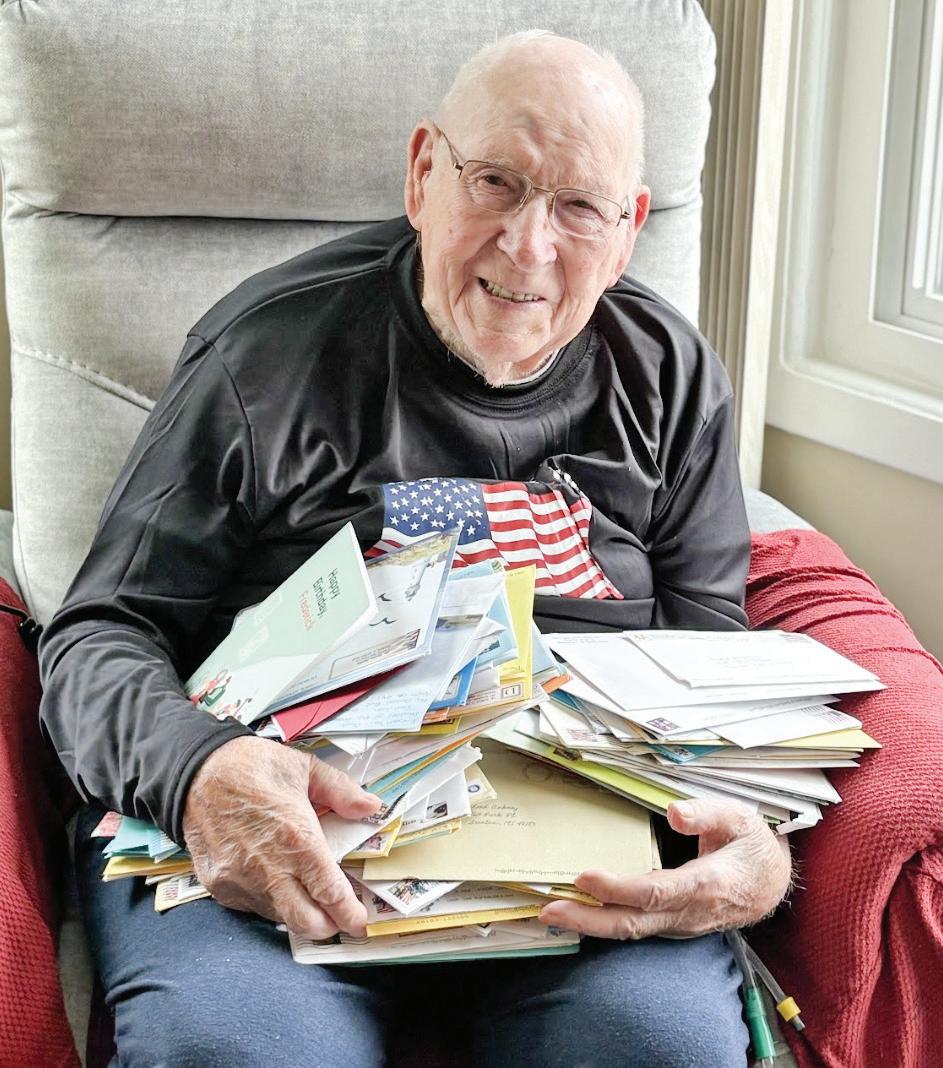 Proud daughter Theresa is a member of the Monguagon Chapter, Daughters of the American Revolution. Along with the chapter’s help, Theresa got the word out asking that her dad receive 100 birthday cards. And by his birthday, Mr. Ankney had received 237 birthday cards from all over the world.