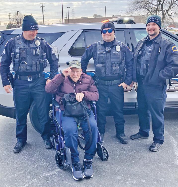 On December 7th, courtesy of the Trenton Police Department, Mr. Ankney arrived at Mom’s Restaurant in Trenton as a passenger in one of a four police car escort, where family and friends gathered to celebrate his special day.